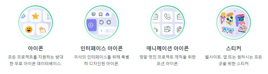 크게 아이콘이 4가지 유형으로 구분되어 서비스 제공 되는데, 요즘 트렌드에 맞는 아이콘이나 스티커를 바로 바로 선택하고 다운로드 받을 수 있어 매우 유용하다.