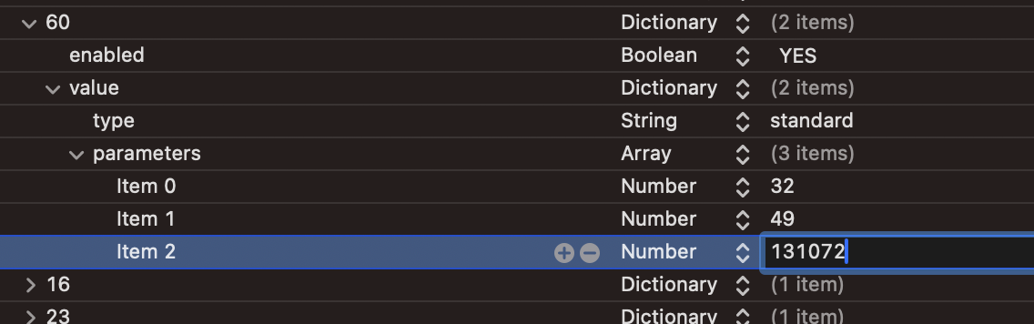 - Xcode에서 열린 plist 파일에서 많은 항목이 나올 것입니다.