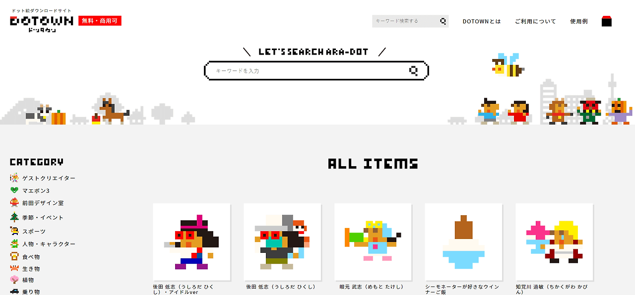 ドット絵ダウンロードサイト DOTOWN|無料の素材サイト