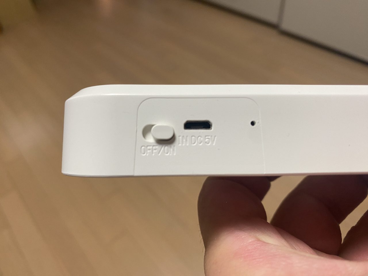 전원을 켠 상태에서 측면에 있는 스위치를 누르면 LED 불이 켜진다.