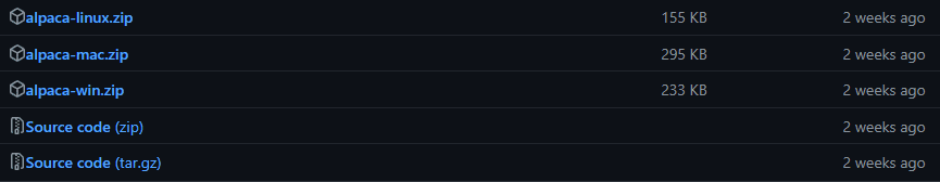 이제 아래 사이트에 가서 alpaca-win.zip 을 다운 받는다.
