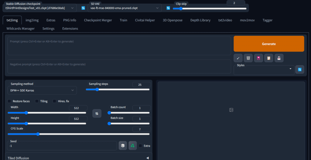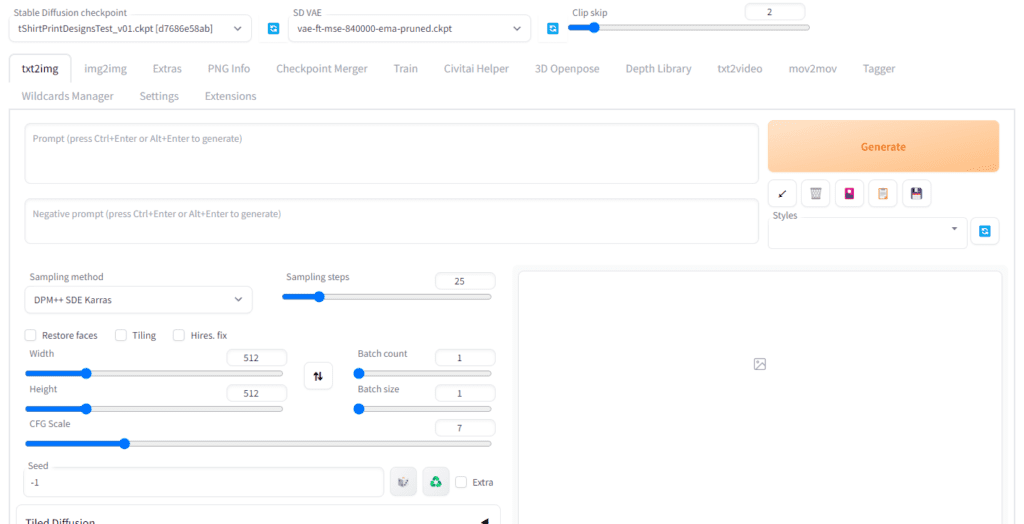 스테이블 디퓨전을 실행하면 웹브라우저의 기본 세팅값에 따라 라이트 모드로 되어 있으면 라이트 모드로 다크모드 설정이면 다크모드로 실행된다.