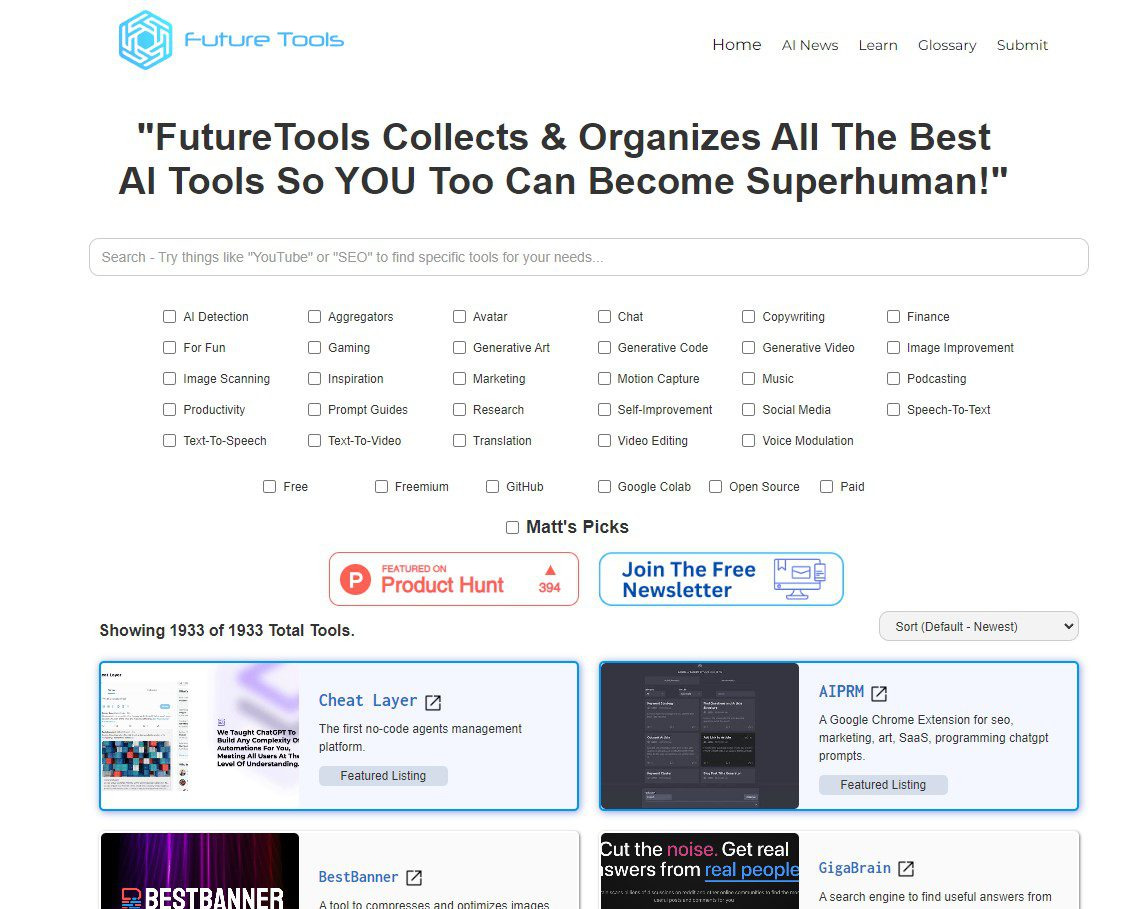 FutureTools Collects & Organizes All The Best AI Tools So YOU Too Can Become Superhuman!