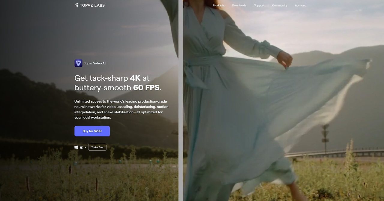 Topaz Labs | Video AI 6™ | Cinematic superpowers. Ultra smooth. Sharp. Steady.