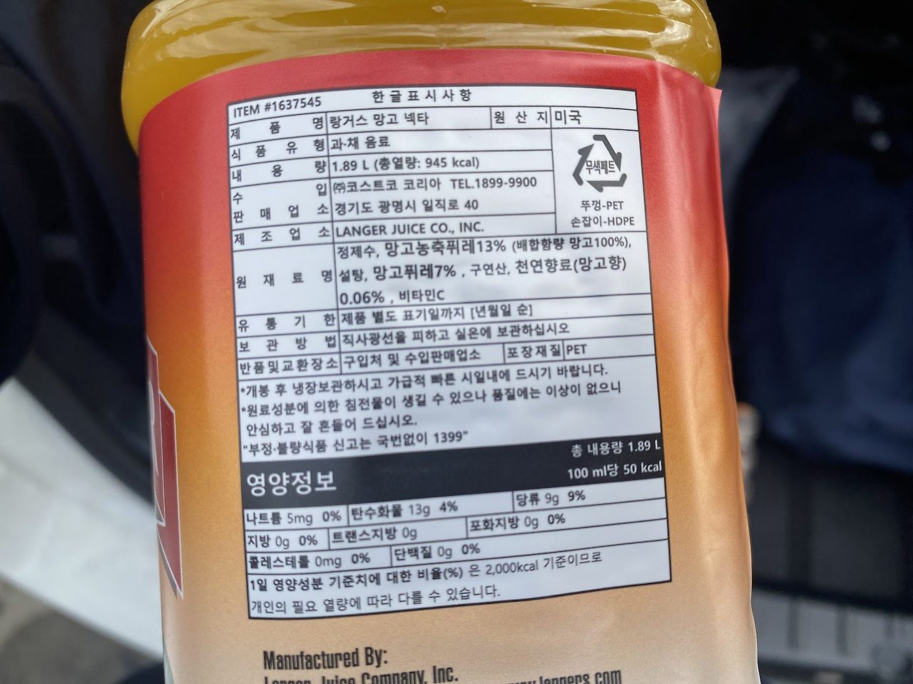 코스트코에서 정말 맛있는 망고 쥬스이다.