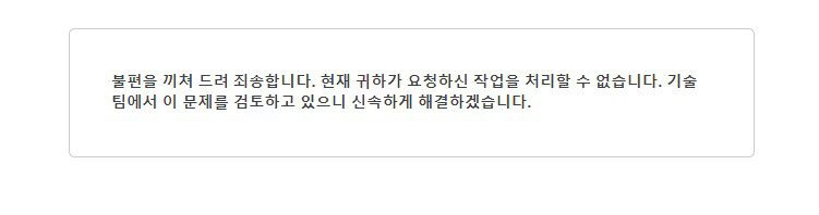 “불편을 끼쳐 드려 죄송합니다. 현재 귀하가 요청하신 작업을 처리할 수 없습니다.