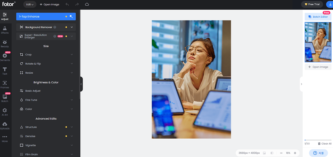 온라인 포토샵 Foter은 매우 직관적인 메뉴가 특징이고