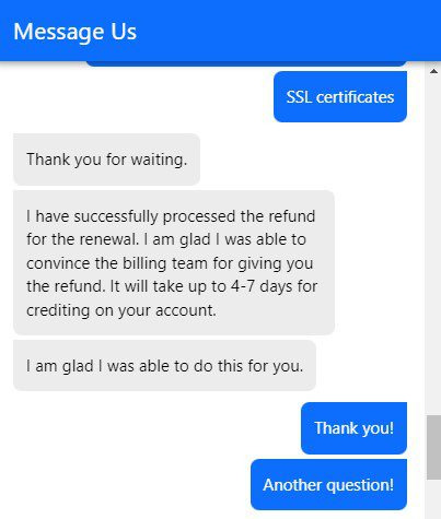 CodeGuard Basic One Year Term은 백업 서비스로 잘 안쓰는 기능이고 필요 없어 보이고, 만약 필요할때 114달러 내면 백업이 가능하다 해서 이 서비스는 환불 하기로 하고 채팅으로 환불 요청을 했다!