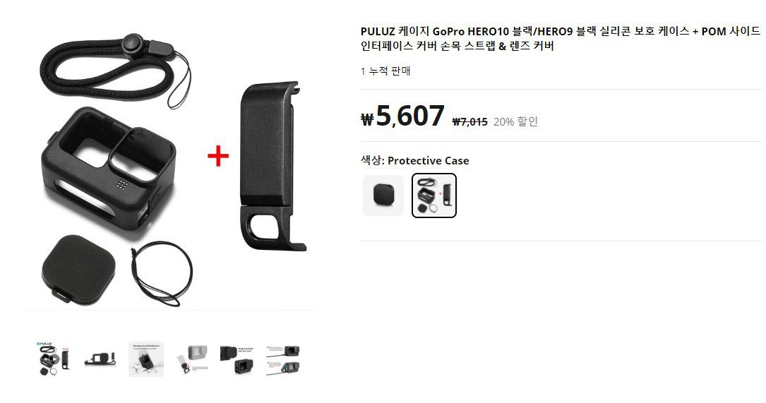 실리콘 케이스, USB 케이블 충전용 밧데리 커버, 손목 스트랩, 렌즈 보호 실리콘이 모두 5,607원