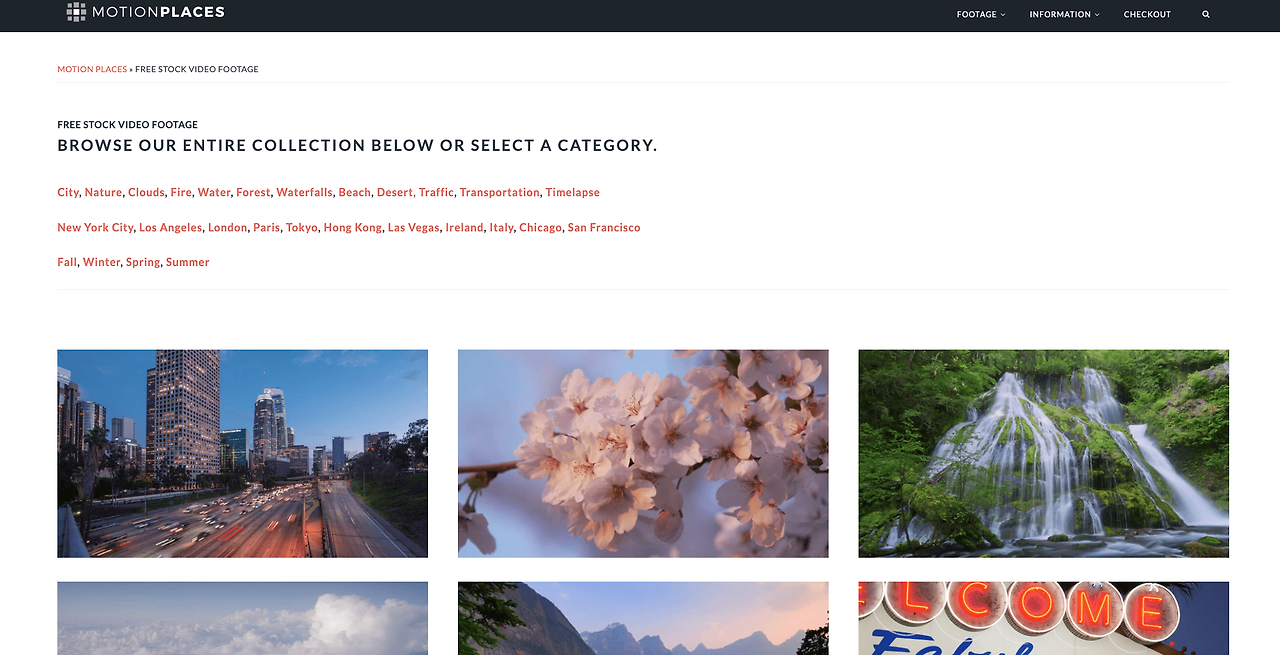 도시나 지역, 계절과 같은 카테고리로 해당하는 동영상 클립을 다운받을 수 있습니다.