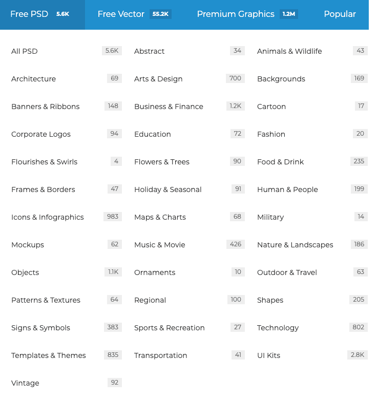 PSD파일 카테고리를 보면 정말 많은 카테고리가 잘 정리되어 있는데