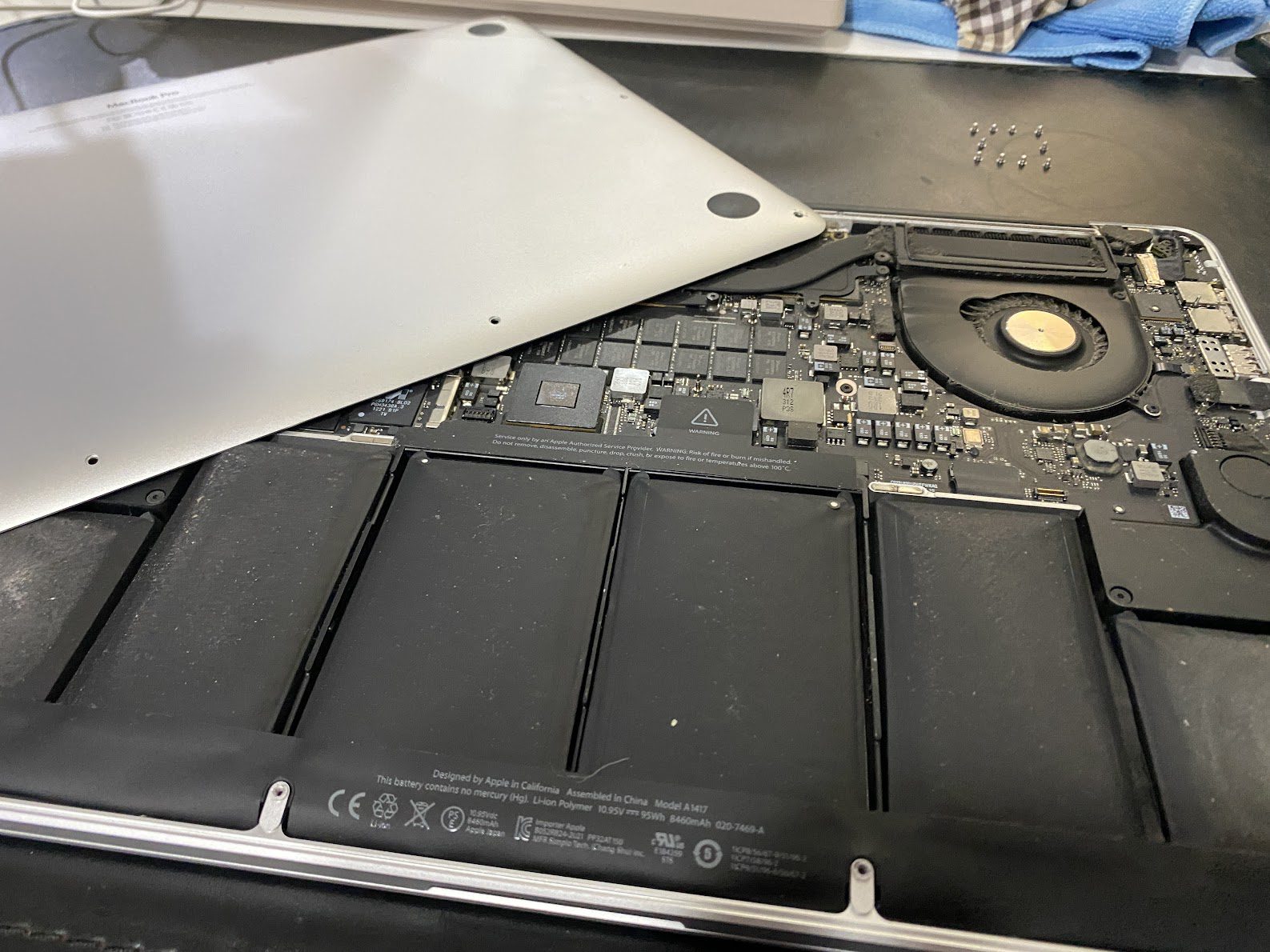 배터리를 받고 맥북프로 하판의 나사를 뺴서 분리해 본다.