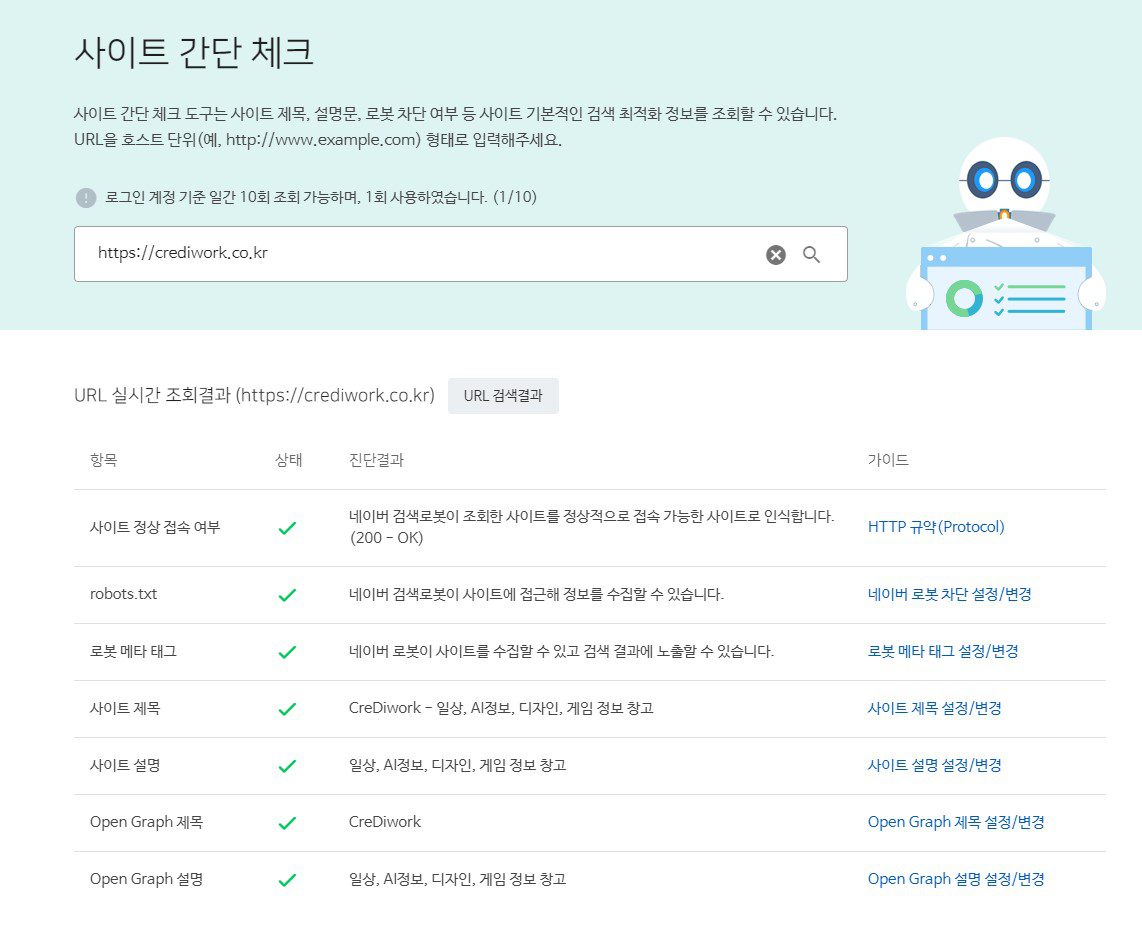 네이버 서치어드바이저 웹 마스터 도구 간단체크를 이용하면