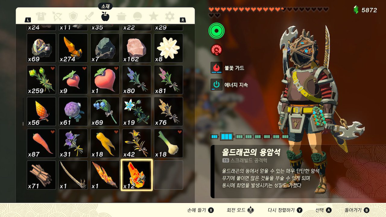 등에 난 뿔 사이에 있는 올드래곤의 용암석을 12개와 뿔 하나를 얻었다 ㅋㅋ