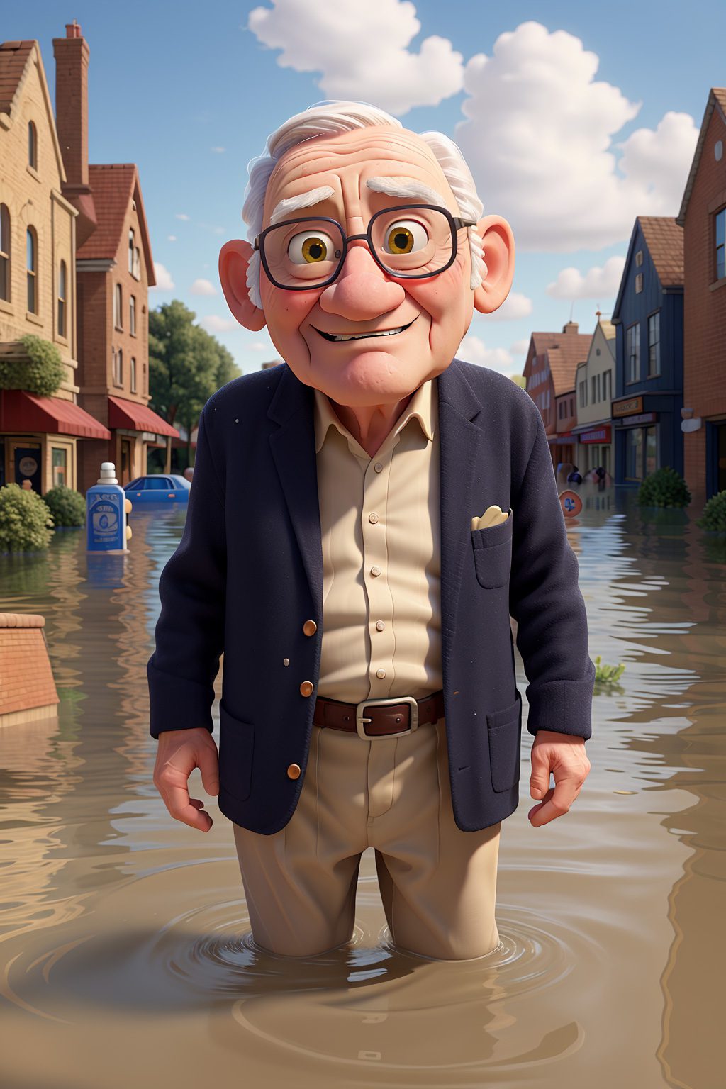 masterpiece, best quality ,an old man submerged in a flood at town
