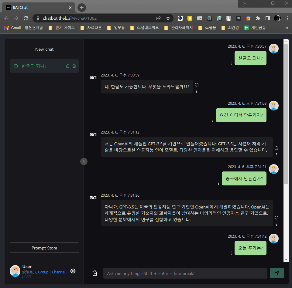 하지만 UI나 모든것이 ChatGPT의 짝퉁스러우며, 중요한건 중국에서 만든 사이트라는것이다!