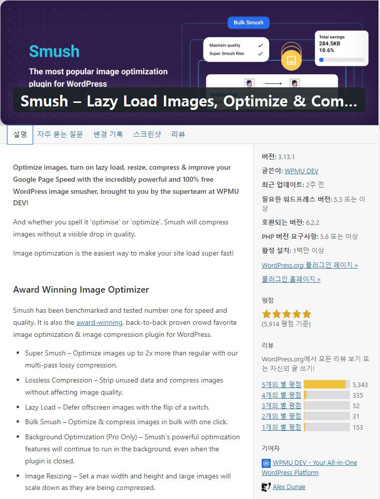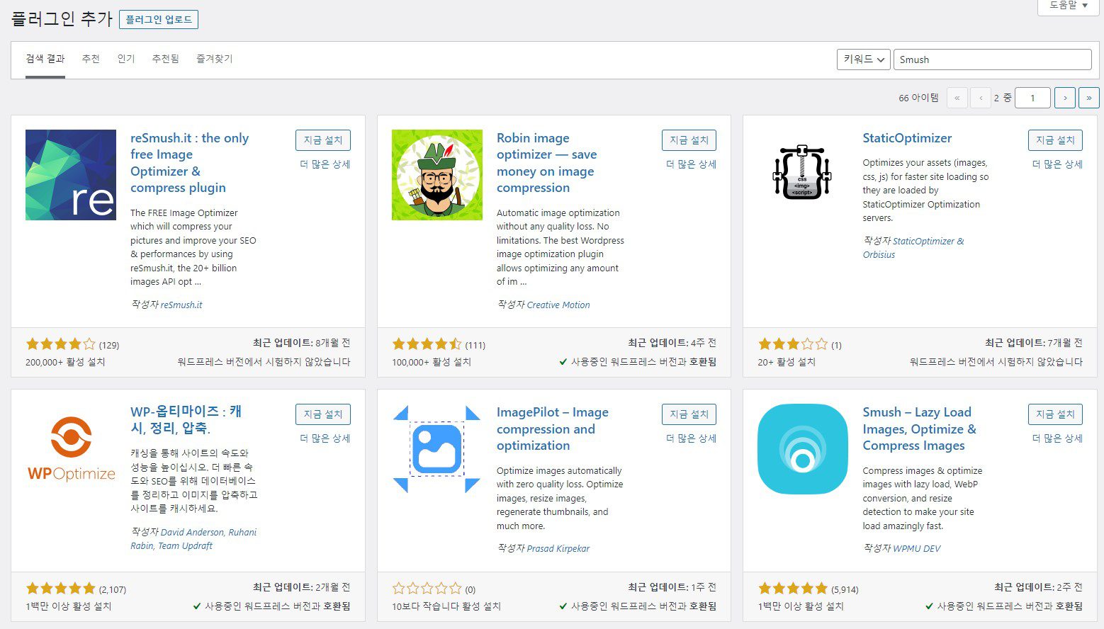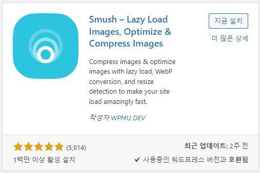 워드프레스 플러그인에서 검색으로 [Smush]를 입력하면 나오는데,