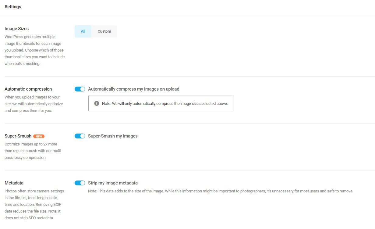 When you upload images to your site, Smush can automatically optimize and compress them for you saving you having to do this manually.