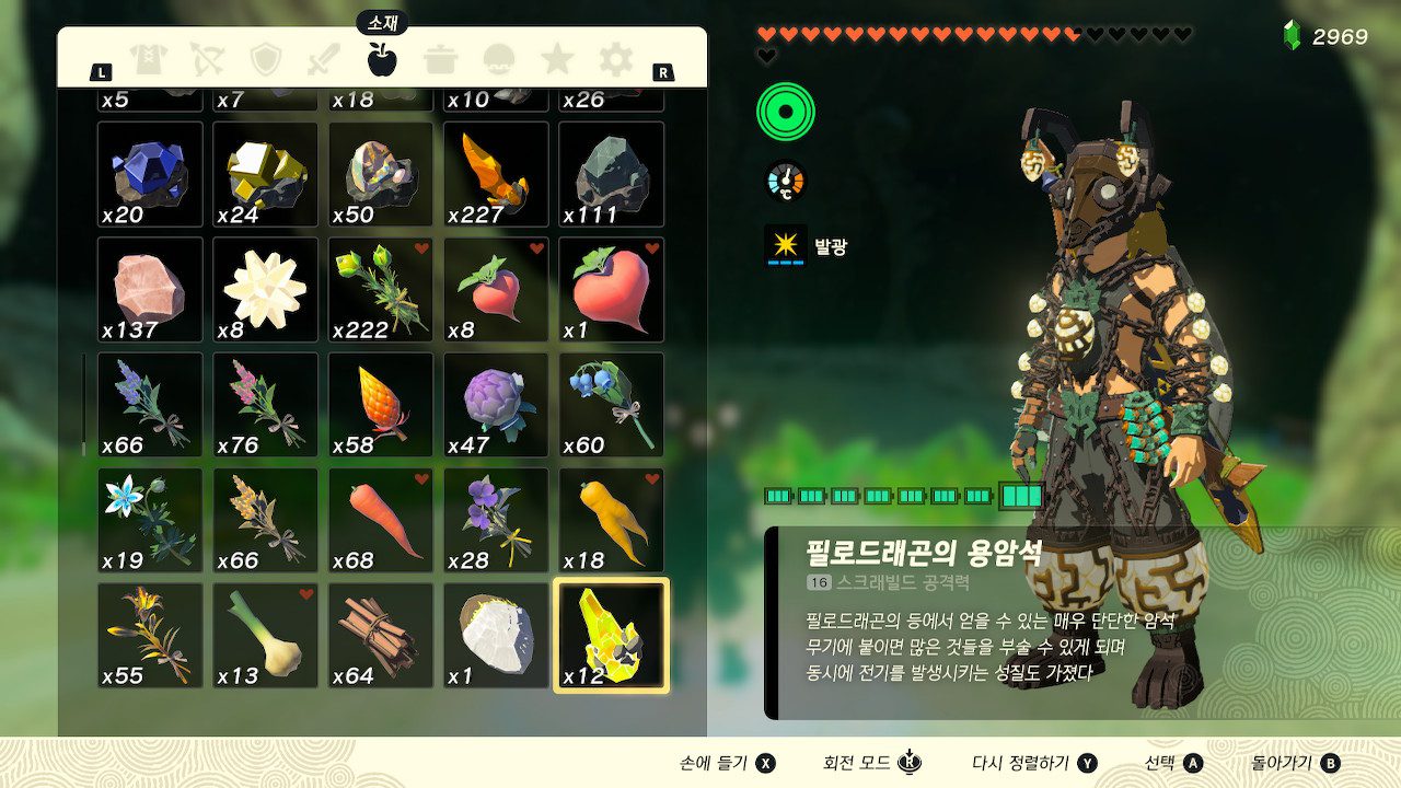 덕분에 등에 난 뿔 사이에 있는 필로드래곤의 용암석을 12개나 주웠다!