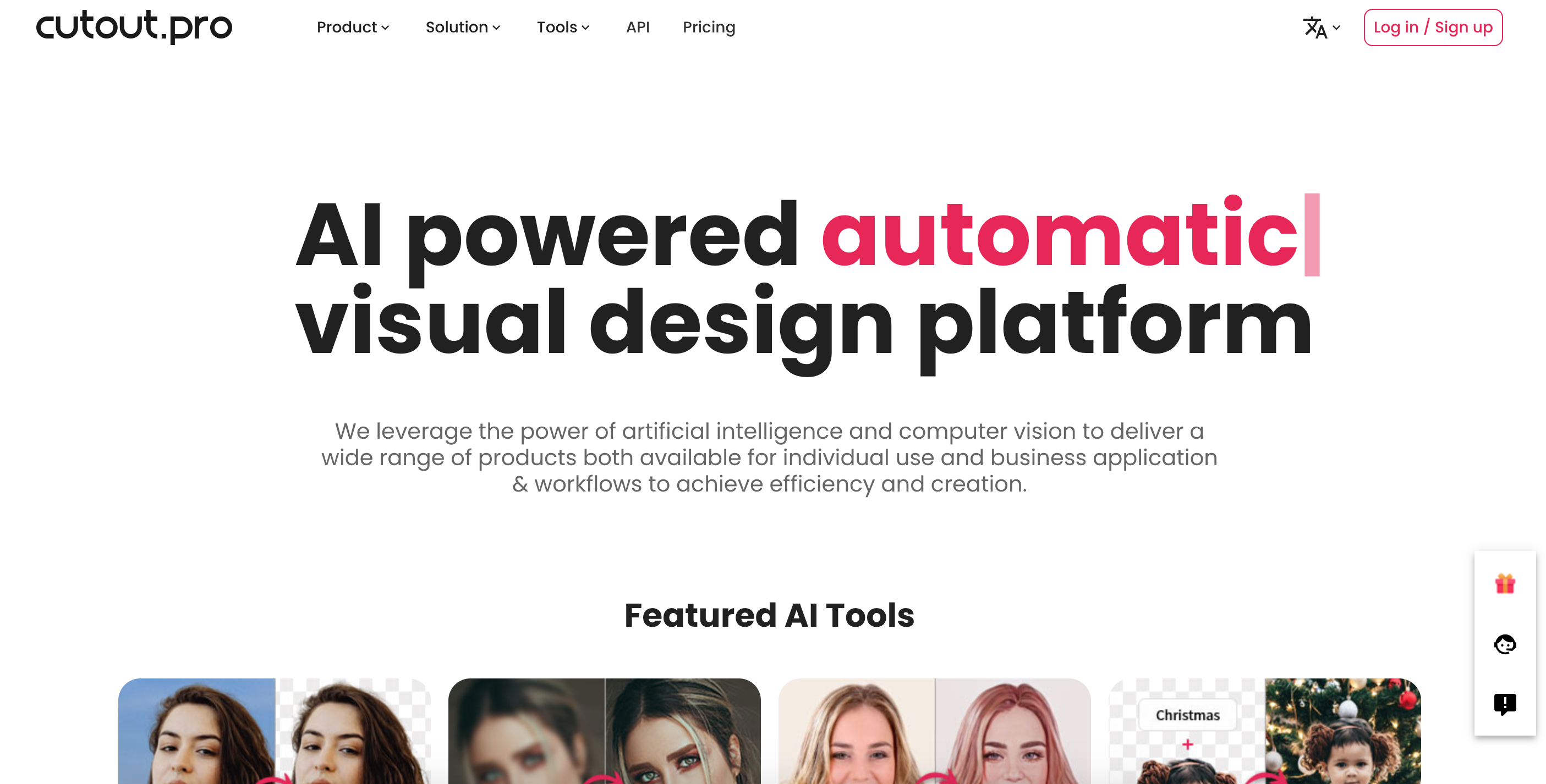 All-in-one visual design platform containing AI photo and video editing tools. Automatic process for background remove, image restoration, graphic design, and content generation. With Cutout.Pro, it is one click away to optimize your content and transform
