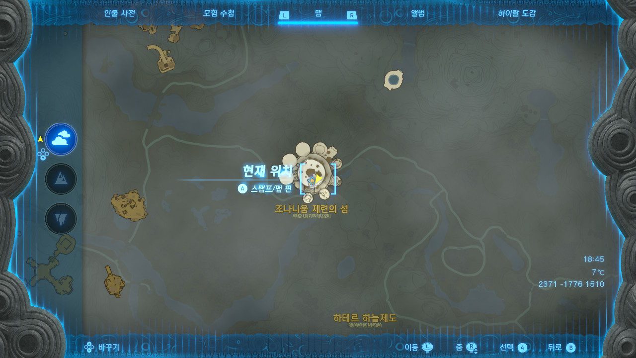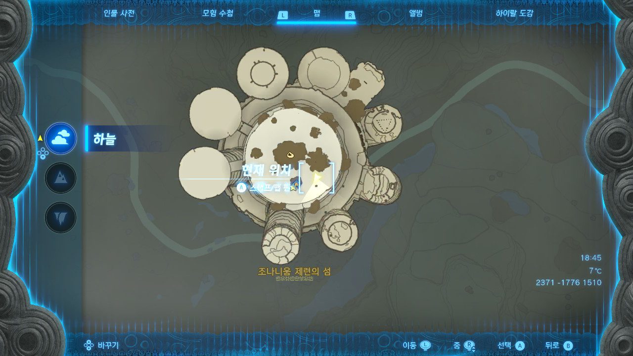 조나니움 가슴 보호대가 있는 곳은 좌표상으로는 2371 -1776 1510 로 하늘 섬중 하나이다.