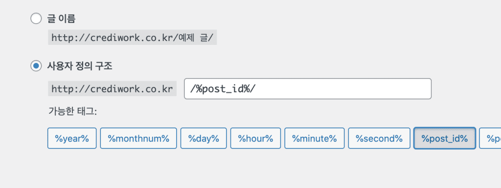 아래와 같이 사용자 정의 구조에서 post_id로 바꾸어 준다.