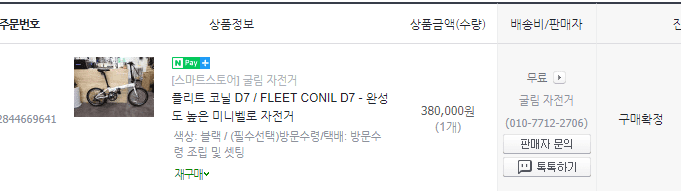 별내에 있는 굴림 자전거 매장에서 픽업하는 조건으로 주문하였다