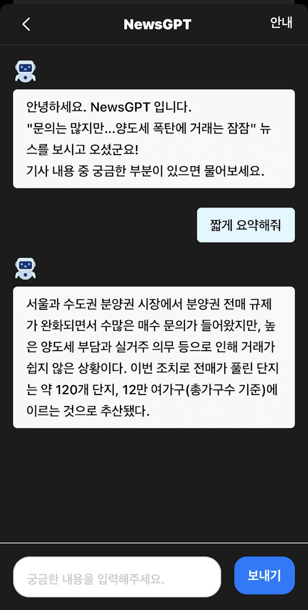 요 녀석을 클릭하면 뉴스 GPT로 연결이 된다.