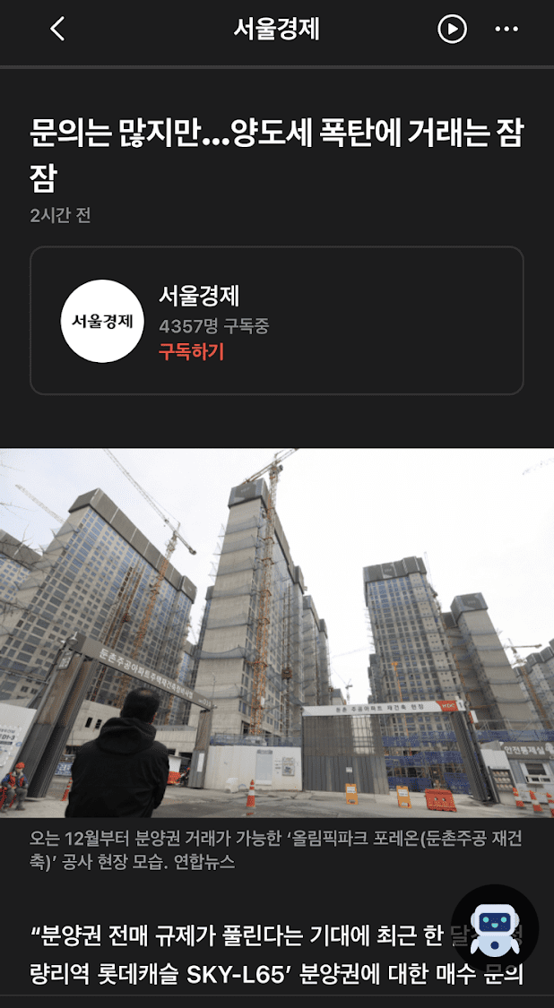 로그인을 하고 뉴스를 보면 우측 하단에 로봇 모양 아이콘이 둥둥 떠 있다!