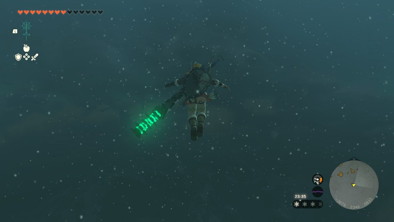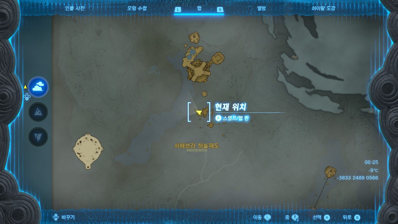 - 조사하기 기능을 사용하면 높은 고도로 올라갈 수 있으며, 이후 페러세일을 펼쳐 하늘 맵의 섬으로 이동하면 됩니다.