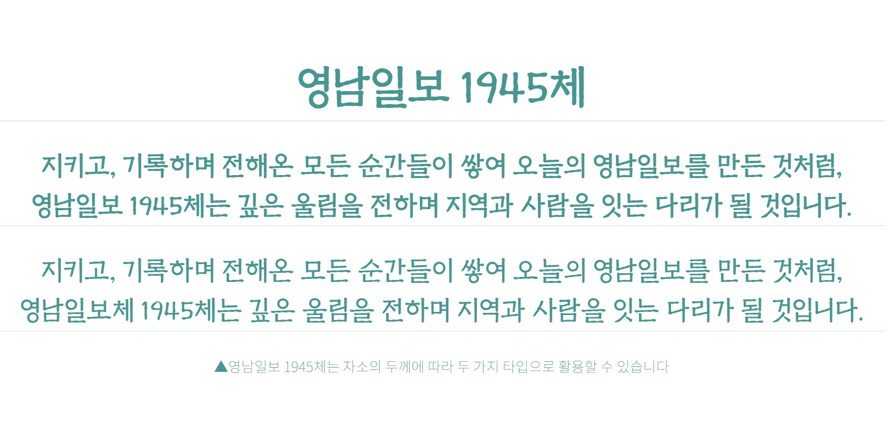 ‘영남일보 1945체’는 그 이름처럼 신문 창간 연도인 1945년을 기념하며 제작된 서체입니다.