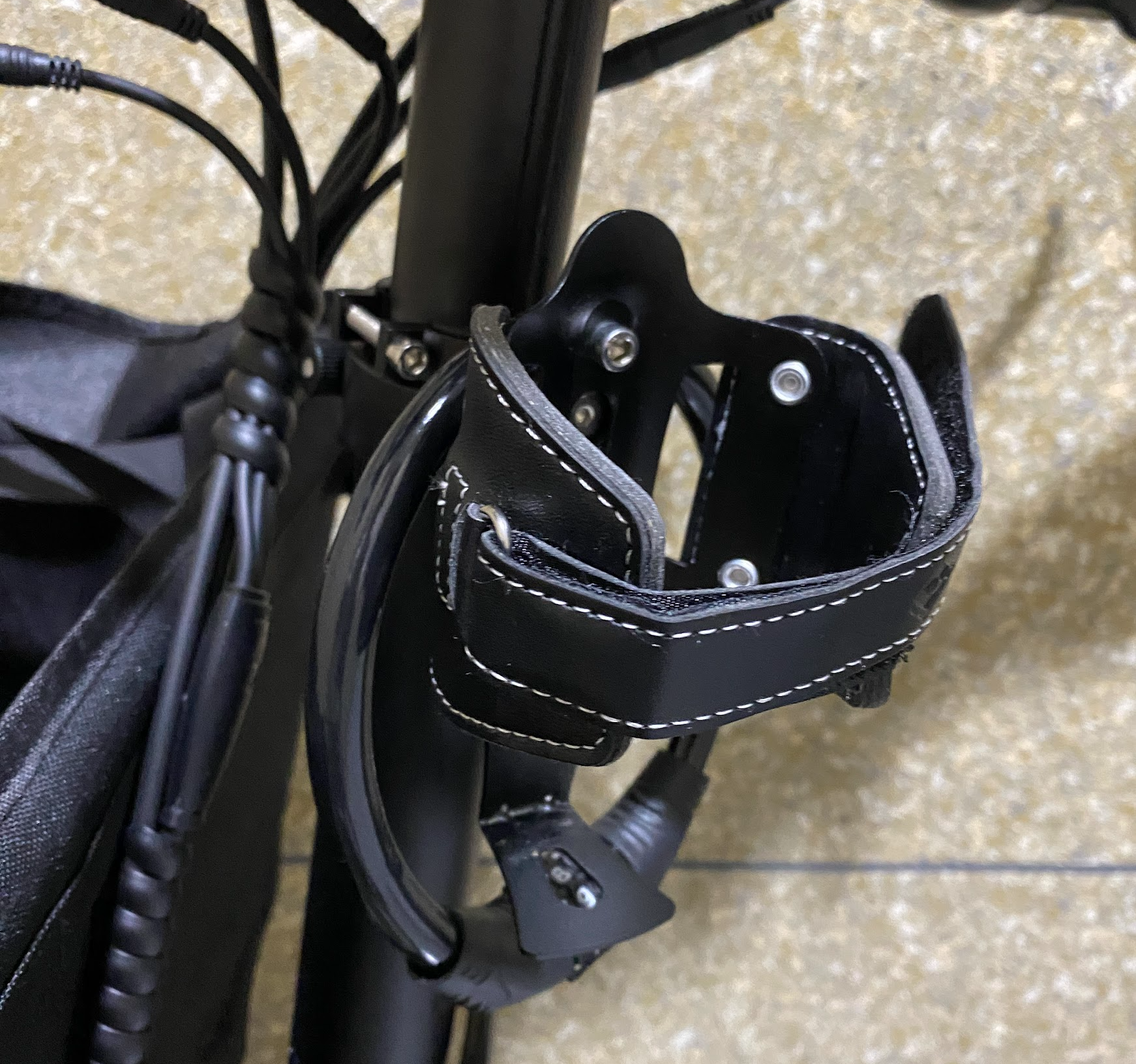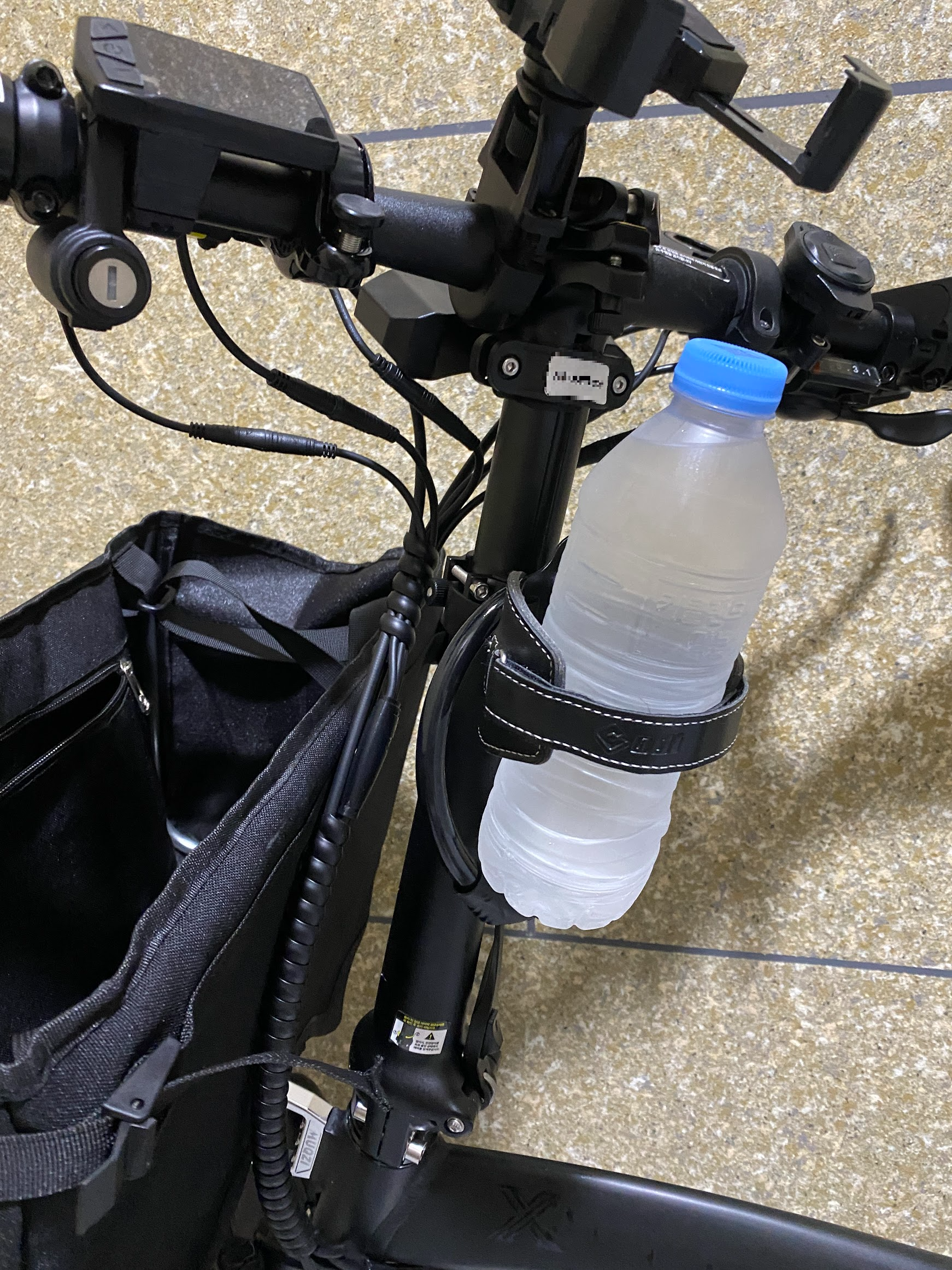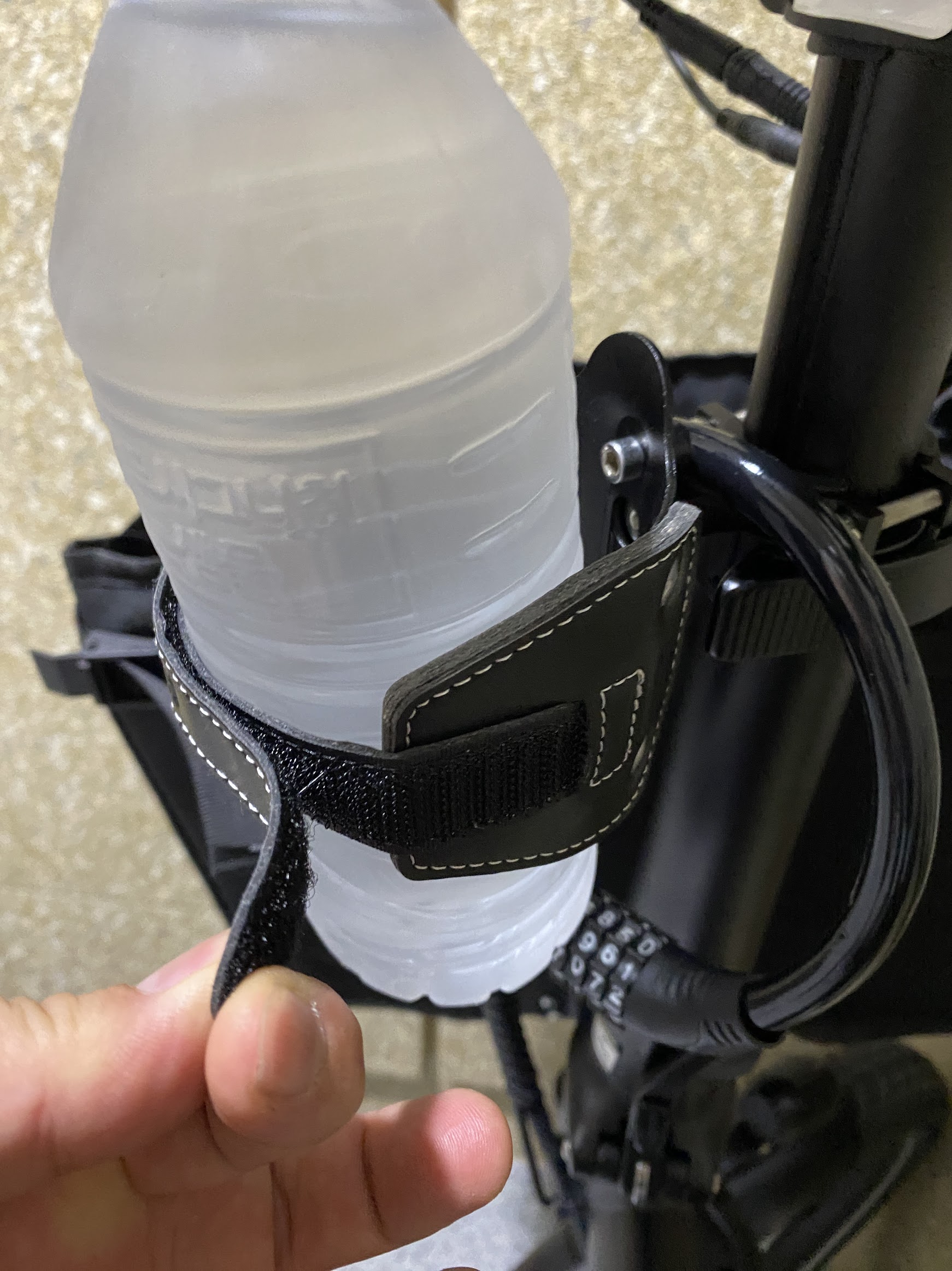 세로형 핸들바 장착, 찍찍이(벨크로)로 단단히 고정, 감성 가죽 디자인의 완성형 물병 거치대!