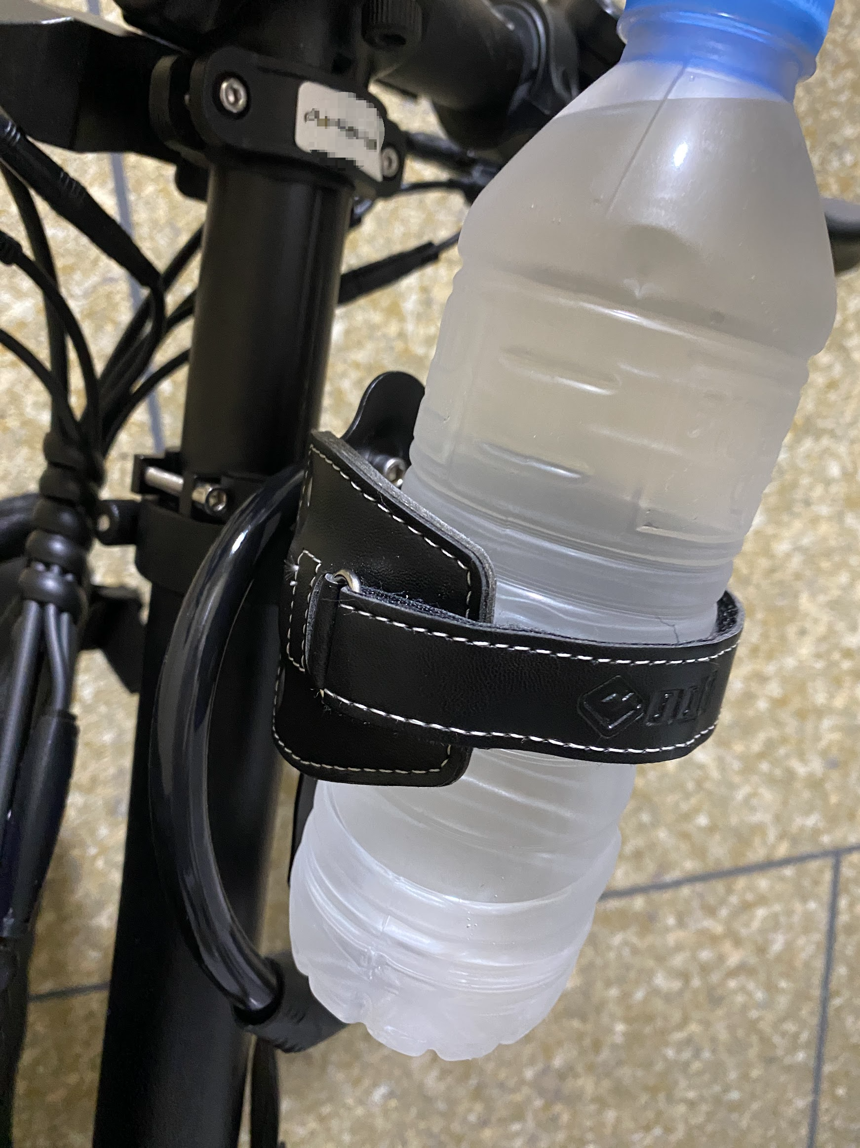 세로형 핸들바 장착, 찍찍이(벨크로)로 단단히 고정, 감성 가죽 디자인의 완성형 물병 거치대!