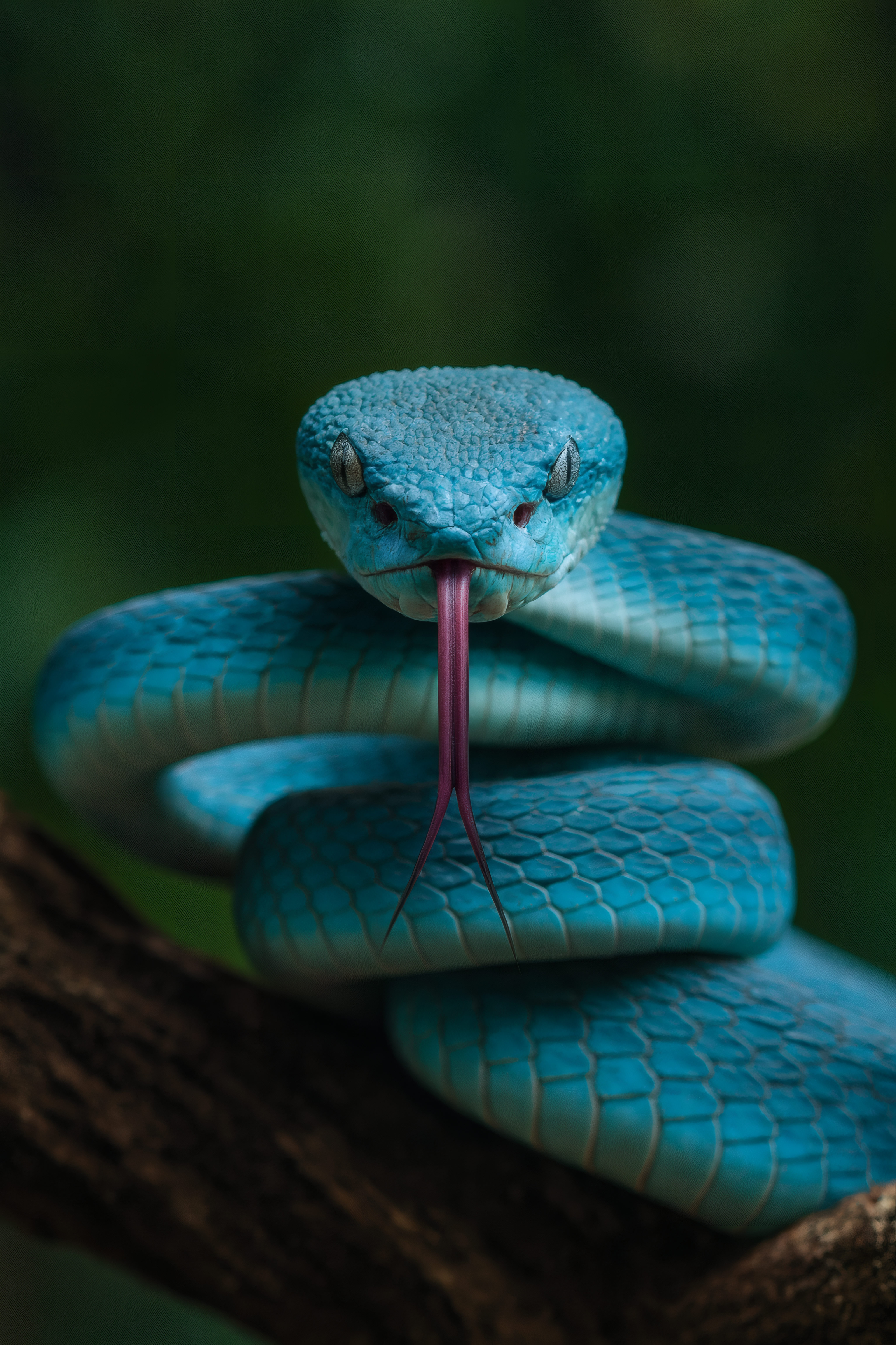 - 특징: 이름처럼 강렬하고 아름다운 푸른색 비늘과 붉은 눈이 특징적이며, 매우 치명적인 독을 가진 독사입니다.