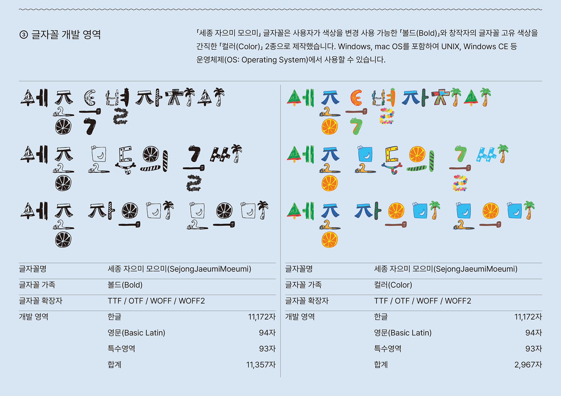 "본 제작물에는 세종시문화관광재단의 세종자으미모으미체가 적용되었습니다."