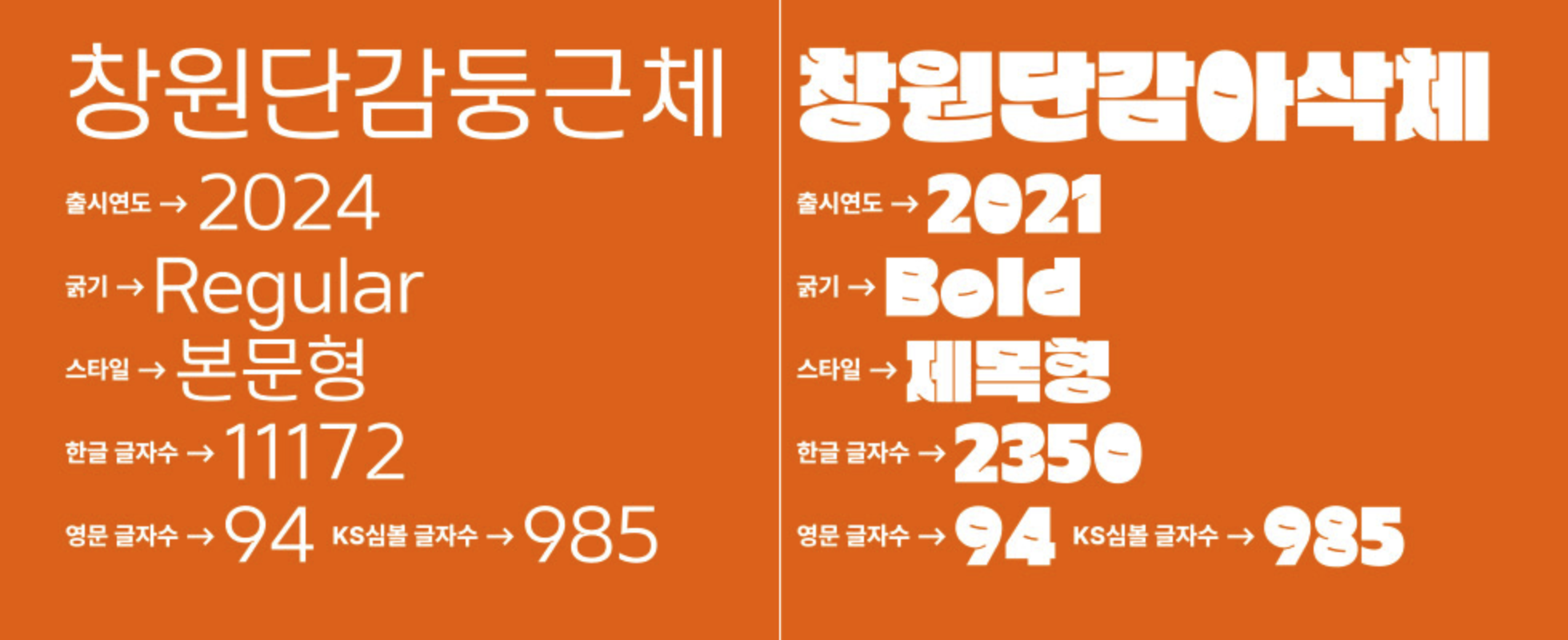 가장 먼저 소개해 드릴 폰트는 새롭게 태어난 '창원단감둥근체'입니다.