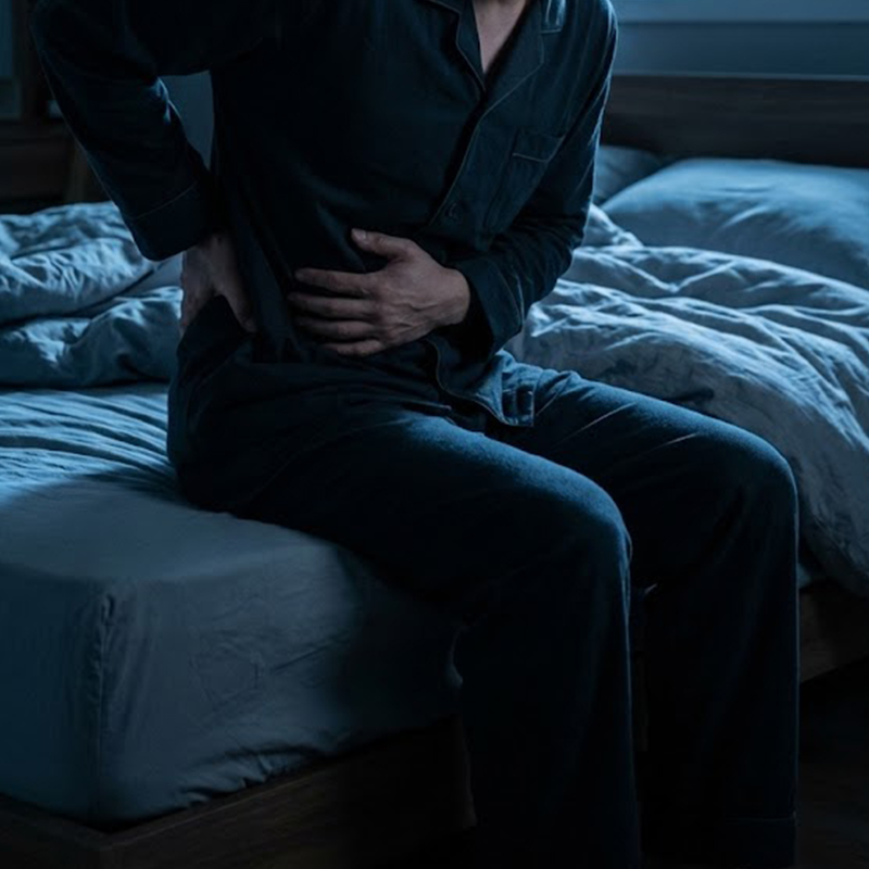 [2위] 명치와 등의 통증: "누우면 더 아프고, 구부리면 덜 아파요"