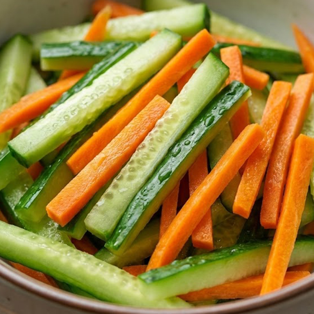 김밥, 비빔밥, 샐러드 등 다양한 요리에서 오이와 당근은 떼려야 뗄 수 없는 단짝처럼 보입니다.