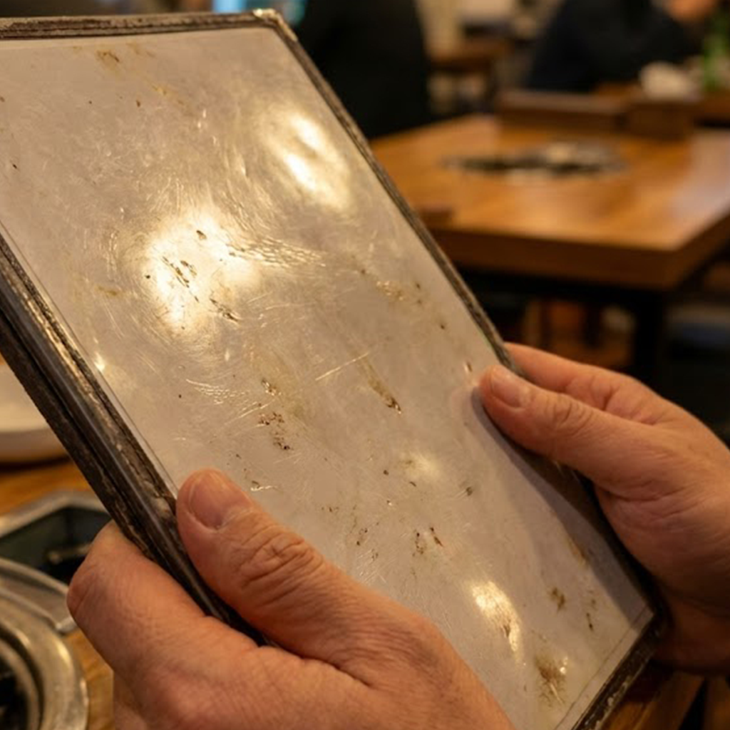 3위는 식당에 가면 가장 먼저 집어 드는 코팅된 메뉴판입니다.