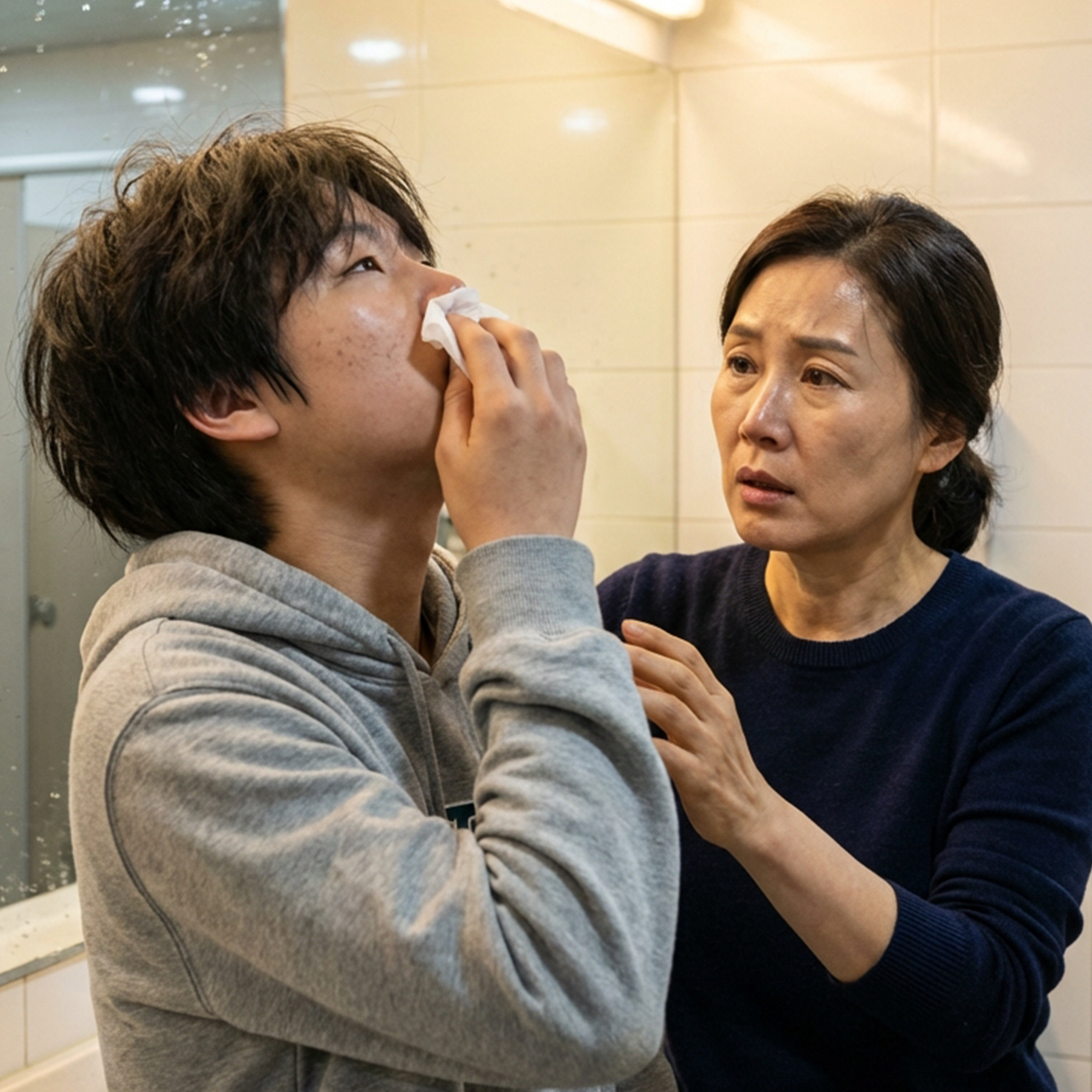 코피가 나면 반사적으로 고개를 뒤로 젖히는 분들이 많습니다.