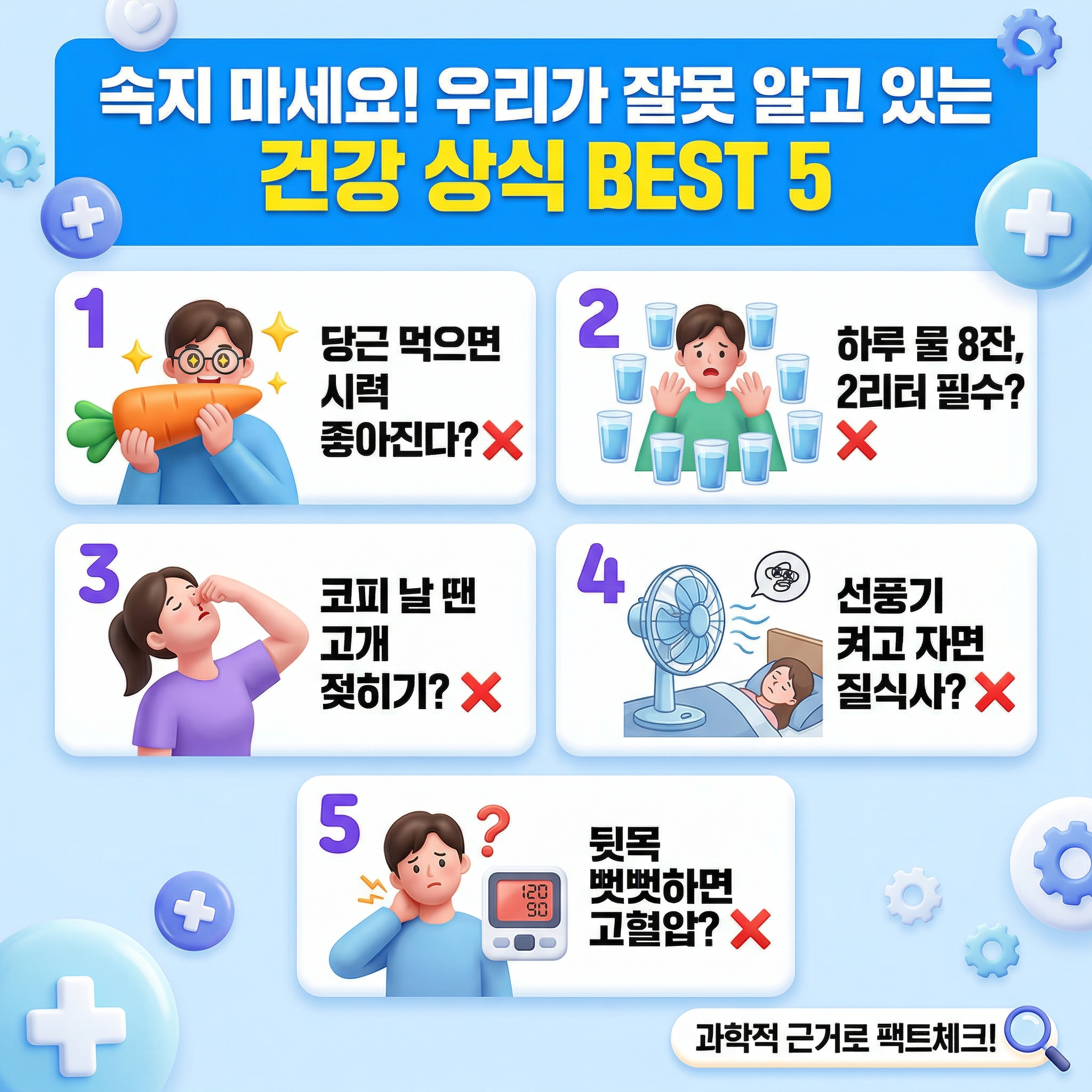 실제로는 잘못된 건강 상식 다섯 가지를 하나씩 짚어보겠습니다.
