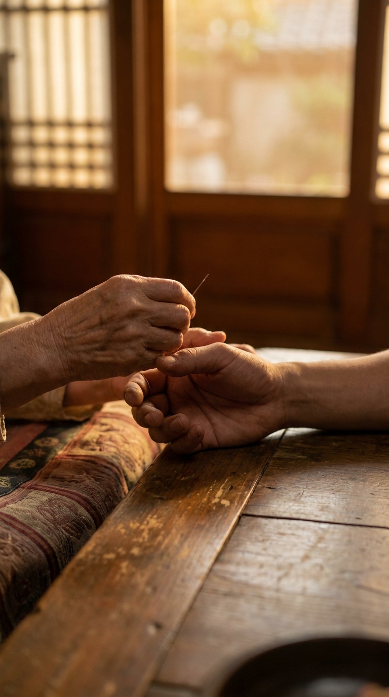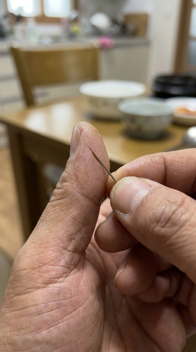명치 아래가 답답하고 체한 것 같을 때, 바늘로 손가락 끝을 따서 피를 내는 행동은 한국에서만 유독 흔한 민간요법입니다.