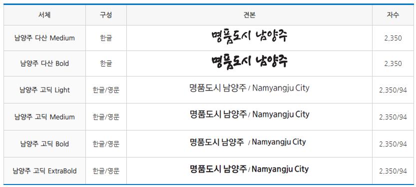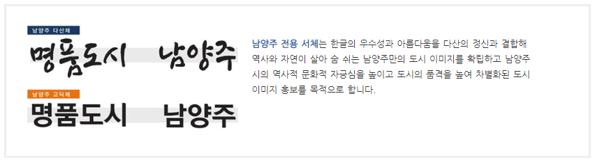 남양주시에서 배포하는 남양주고딕 서체, 남양주 다산 서체