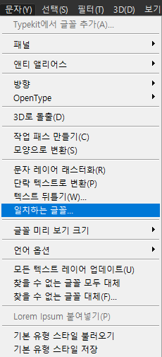 메뉴에서 [문자]-[일치하는 글꼴]을 선택하면