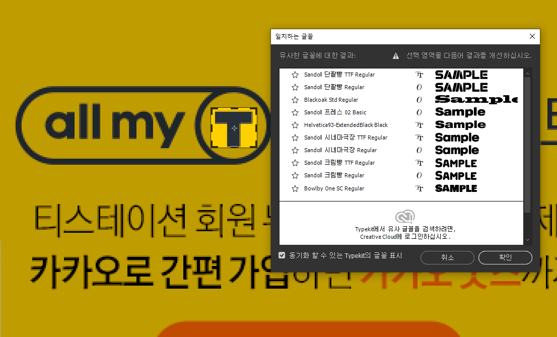 선택된 영역에 사용된 폰트와 비슷한 폰트를 추천해 준다!